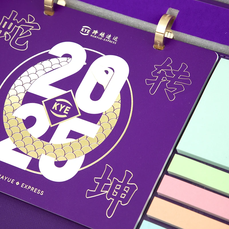 It supports multi-dimensional customization. The cover with gold foil can be replaced, as well as the exclusive logo, company name. The theme text and color style of the memo can also be adjusted. The color quantity and pattern of the sticky notes can be customized as well. Even an exclusive blessing card can be matched to meet the different customization needs of enterprises and individuals.